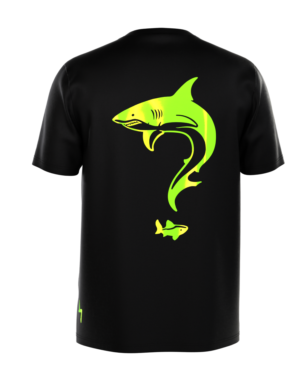 Dive into the electric depths with our Jolted Glow-in-the-Dark Holographic Tee! Forged from 100% Bella + Canvas cotton, this black tee surges with aquatic edge. The front electrifies with "Jolted" in a custom, current-charged font, while the back makes waves with a sleek shark question mark, its fish-point tail sparking intrigue. A subtle logo ripples at the bottom left corner. Hand-vectored, hand-weeded, and pressed with vibrant HTV vinyl, the glow-in-the-dark holographic design pulses in Blue, Purple, Green, or Orange colorways, illuminating the night like bioluminescent tides. Make waves with this shockingly stylish shirt!.