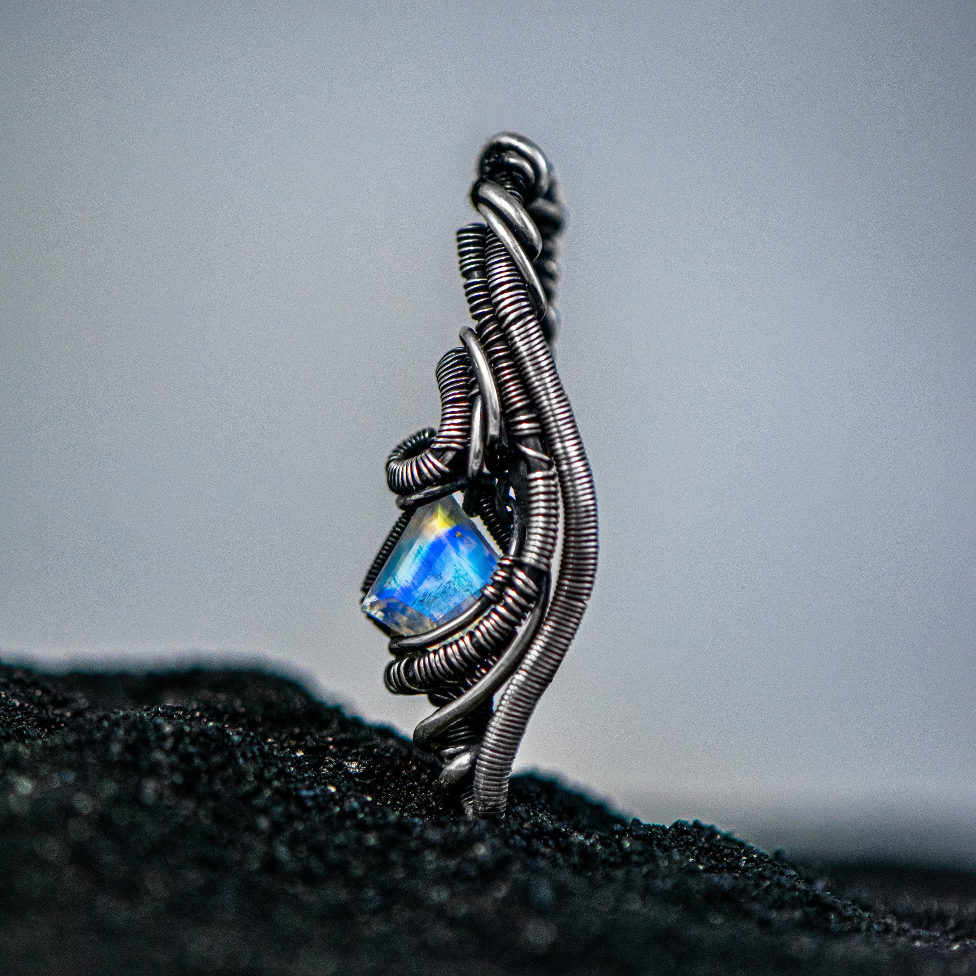 Rainbow Moonstone wrapped in Sterling and Fine Silvers