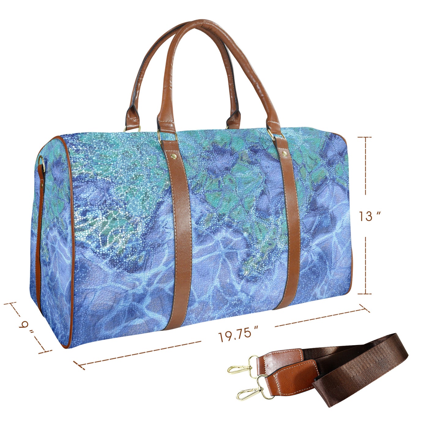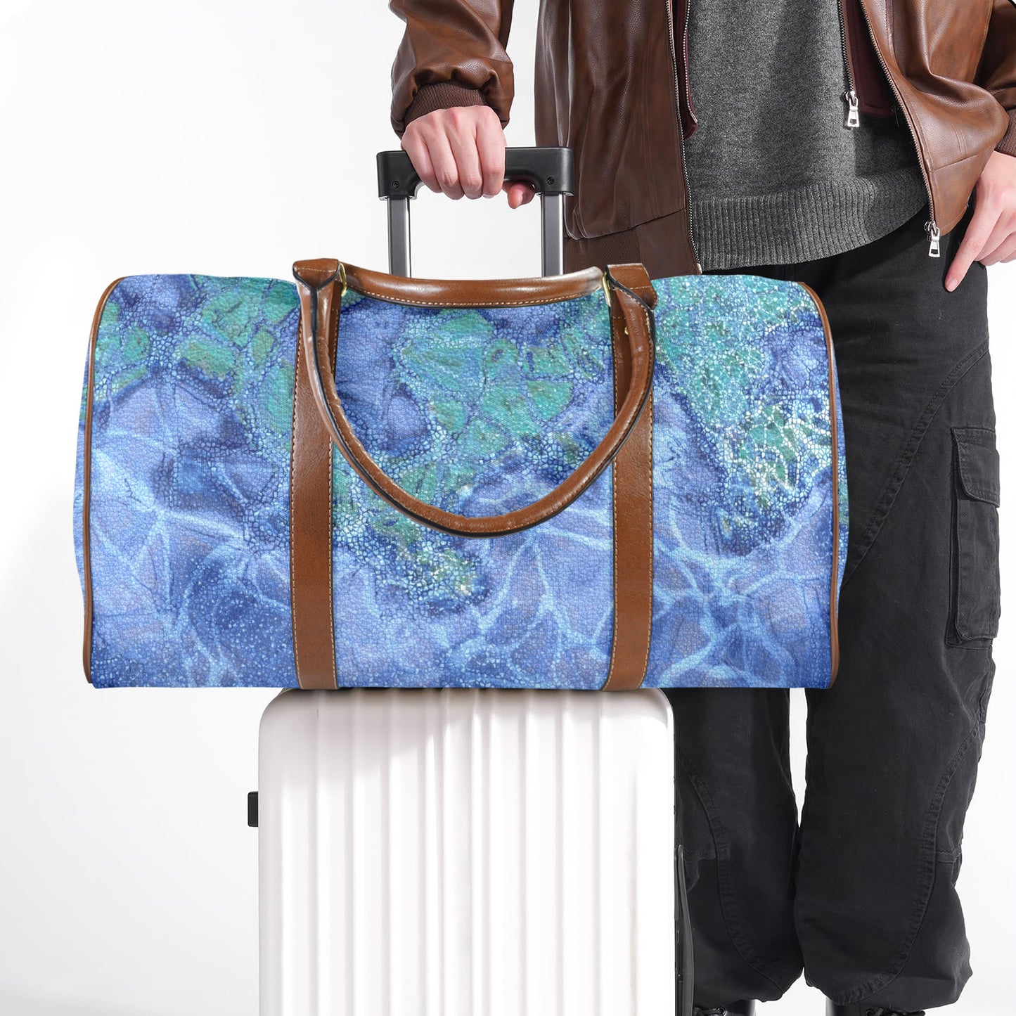 Introducing the Akuah Travel Bag—a stunning blend of art and functionality that's ready to accompany you on every journey. Crafted from lightweight yet robust 100% high-grade nylon, this bag features an aposematic poison dart frog inspired design accented with rich brown microfiber PU leather handles and trims. Its spacious interior effortlessly holds a few days' worth of clothing and toiletries, making it the perfect companion for spontaneous getaways and well-planned adventures alike.