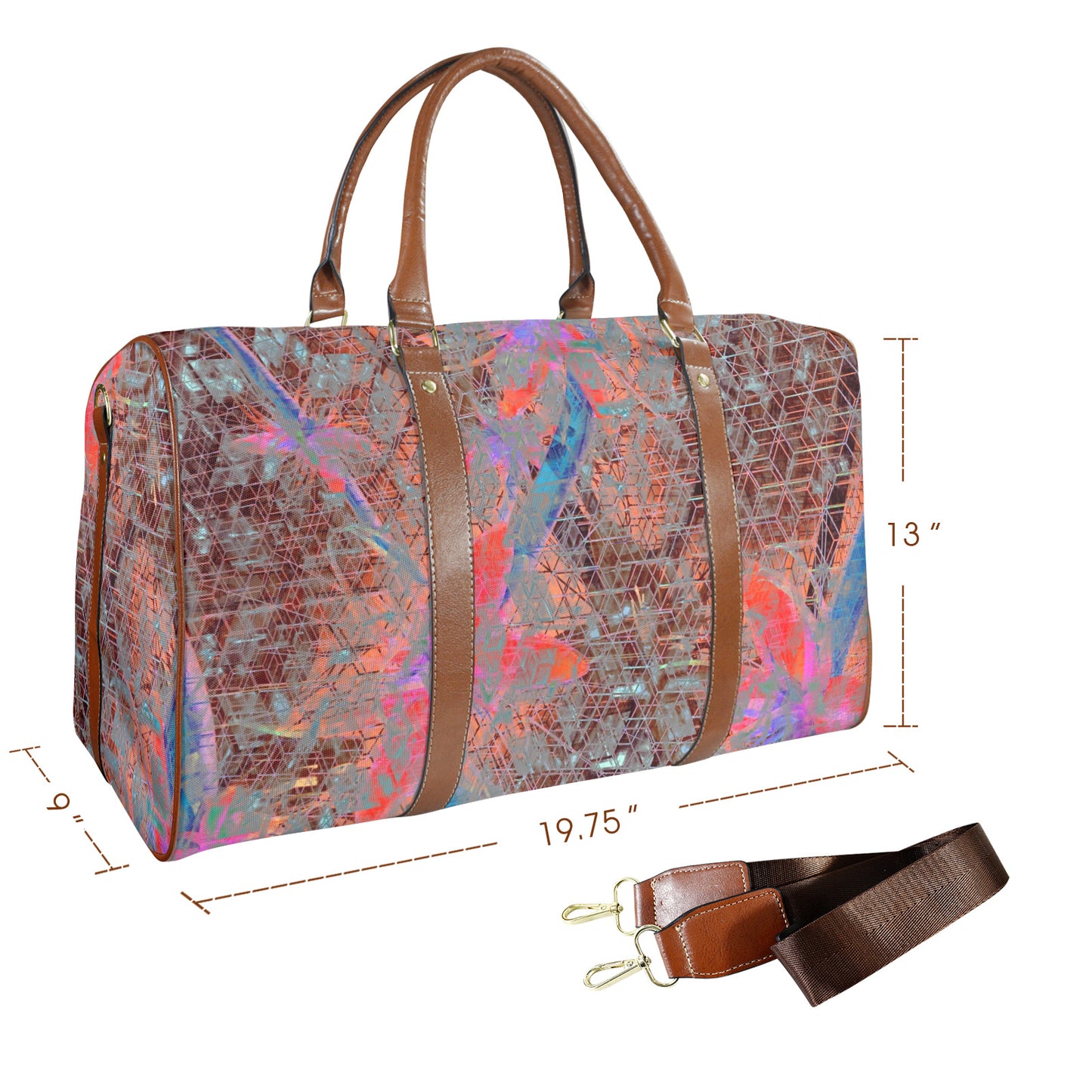 Introducing the Sienna Travel Bag—a stunning blend of art and functionality that's ready to accompany you on every journey. Crafted from lightweight yet robust 100% high-grade nylon, this bag features an enchanting rustic geometric floral design accented with rich brown microfiber PU leather handles and trims. Its spacious interior effortlessly holds a few days' worth of clothing and toiletries, making it the perfect companion for spontaneous getaways and well-planned adventures alike.