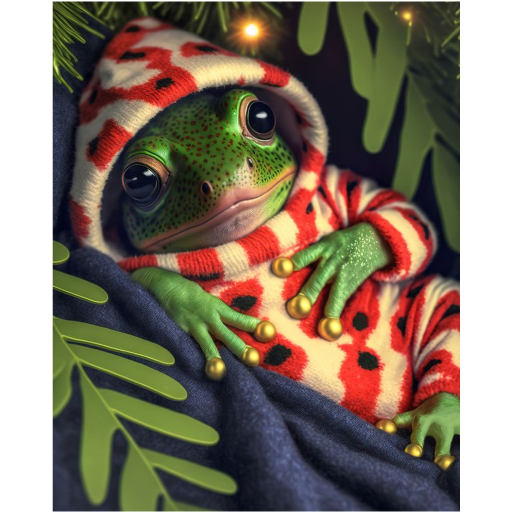Bring some holiday cheer to your home with our NonFroggableToads Christmas Frog art print collection! Made using our innovative Midjourney AI technology and Photoshop, these prints are a unique and exciting way to add some festive flair to your decor. And did you know that toads are immune to poison dart frog toxins? Get ready to impress your guests and spread holiday cheer with these one-of-a-kind prints!