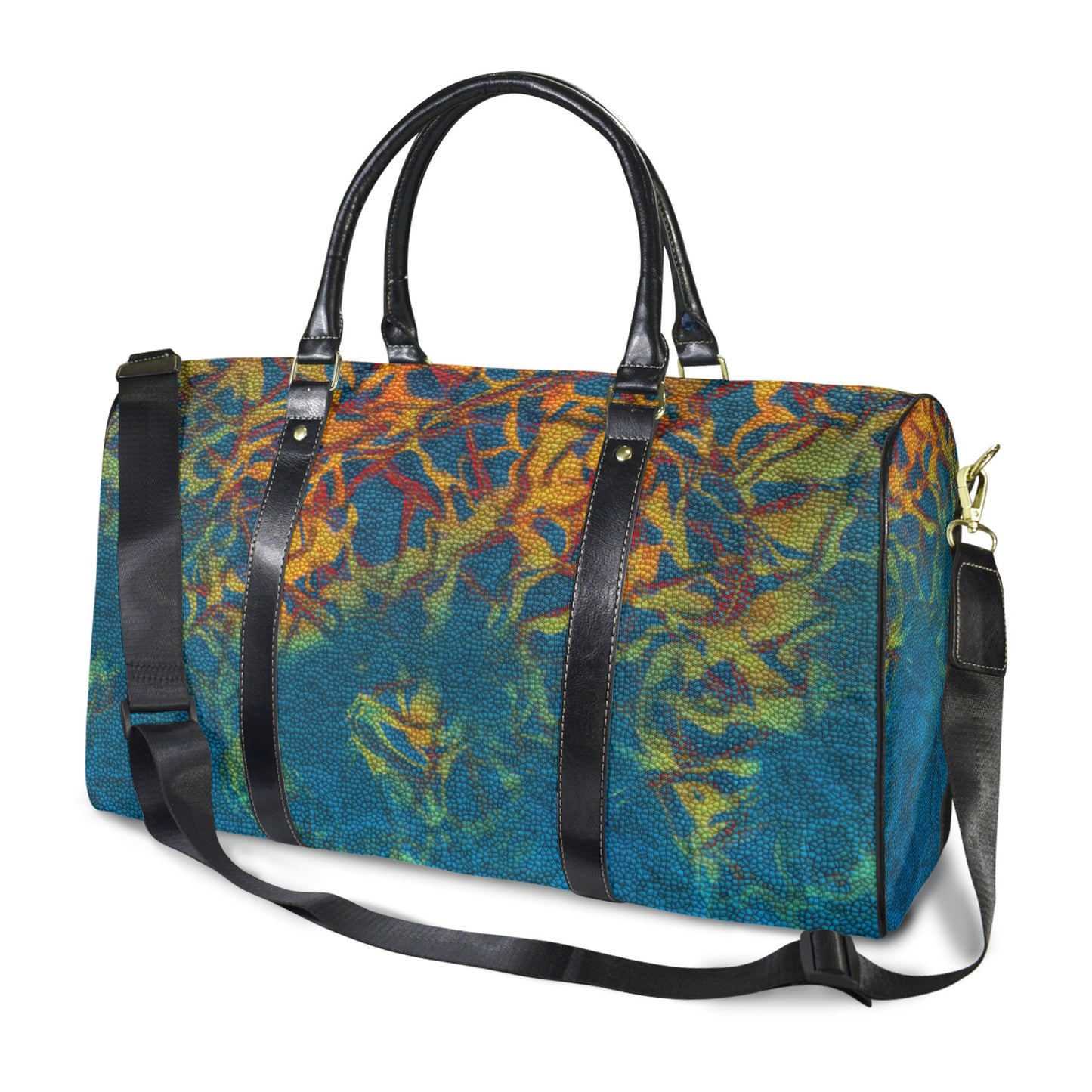 Introducing the Omeya Travel Bag—a stunning blend of art and functionality that's ready to accompany you on every journey. Crafted from lightweight yet robust 100% high-grade nylon, this bag features an enchanting aposematic poison dart frog-inspired design accented with black microfiber PU leather handles and trims. Its spacious interior effortlessly holds a few days' worth of clothing and toiletries, making it the perfect companion for spontaneous getaways and well-planned adventures alike.